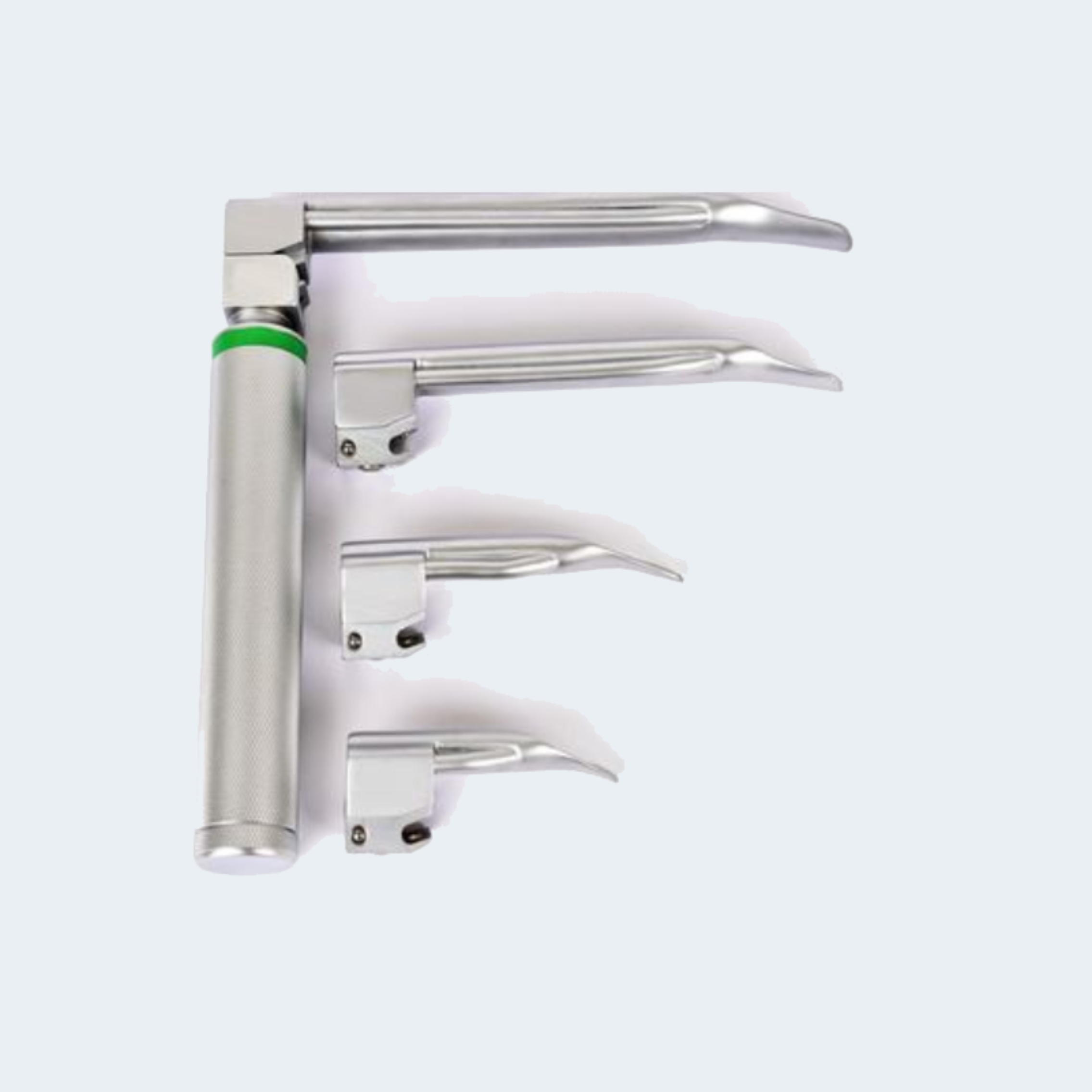 Set de Laringoscopio de 4 hojas rectas del numero 1, 2, 3 y 4.
