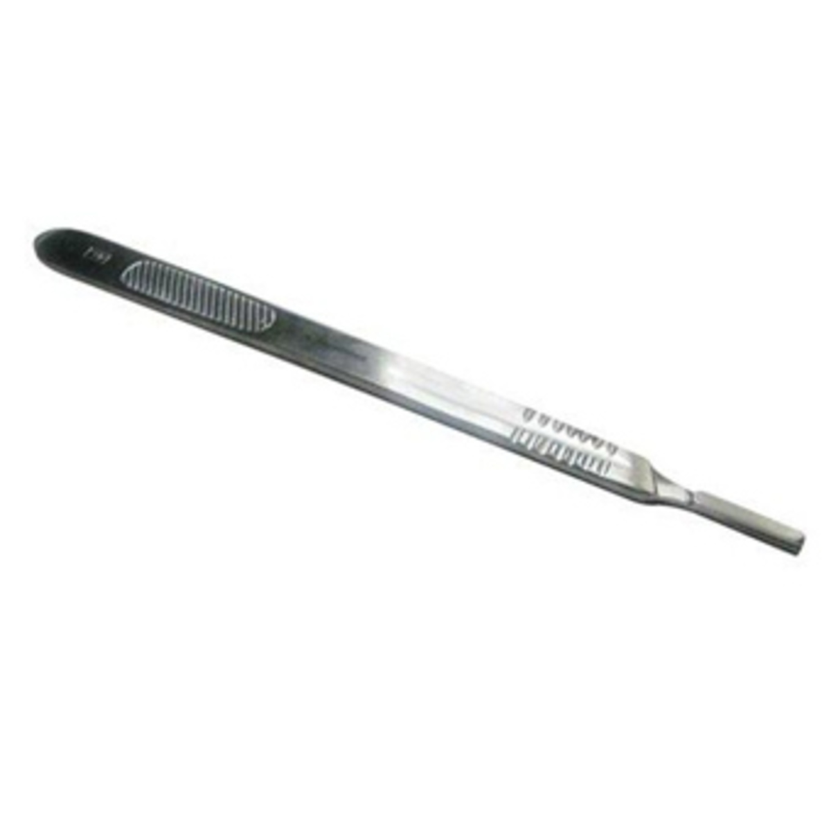 – Mango no.4: mango de acero inoxidable no estéril, largo 13 cm. Compatible con hojas de bisturí no. 18, 19, 20, 21, 22, 22a, 23, 24, 25, 25a, 26, 27, 36.