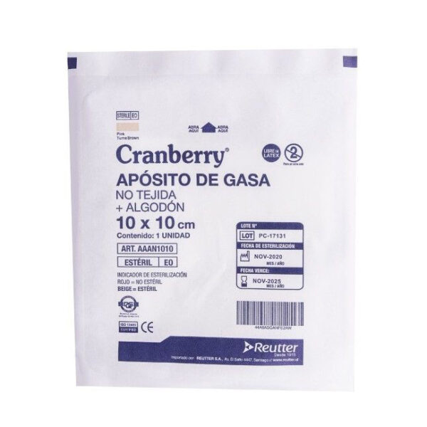 Aposito gasa no tejida + algodon est 10×10 cm cranberry PAQ X 10UN